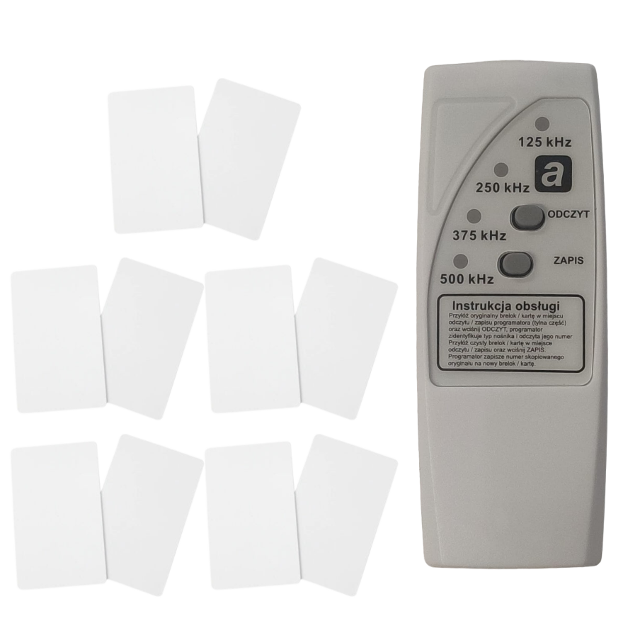 KOPIARKA PROGRAMATOR DUPLIKATOR BRELOKÓW RFID 125kHz, 250kHz, 375kHz, 500kHz + 10 KART RFID (CHIP PROGRAMOWALNY EM4305) W ZESTAWIE