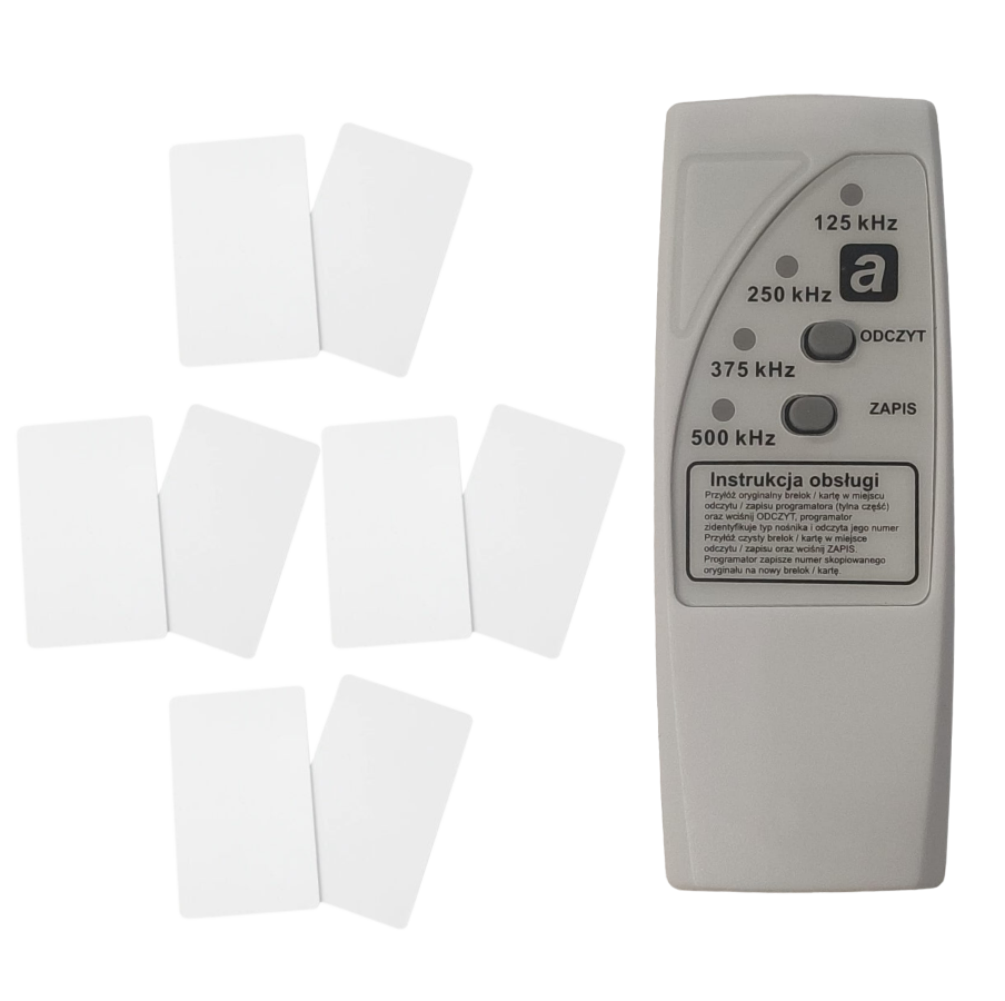 KOPIARKA PROGRAMATOR DUPLIKATOR BRELOKÓW RFID 125kHz, 250kHz, 375kHz, 500kHz + 8 KART RFID (CHIP PROGRAMOWALNY EM4305) W ZESTAWIE