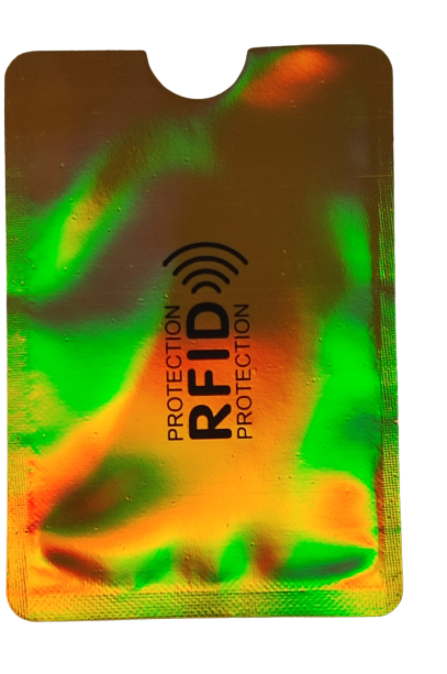 Zestaw 5 szt. etui ochronnego - antykradzieżowego, zabezpieczającego karty płatnicze, kredytowe, identyfikacyjne w kolorze złoto-wielokolorowym.