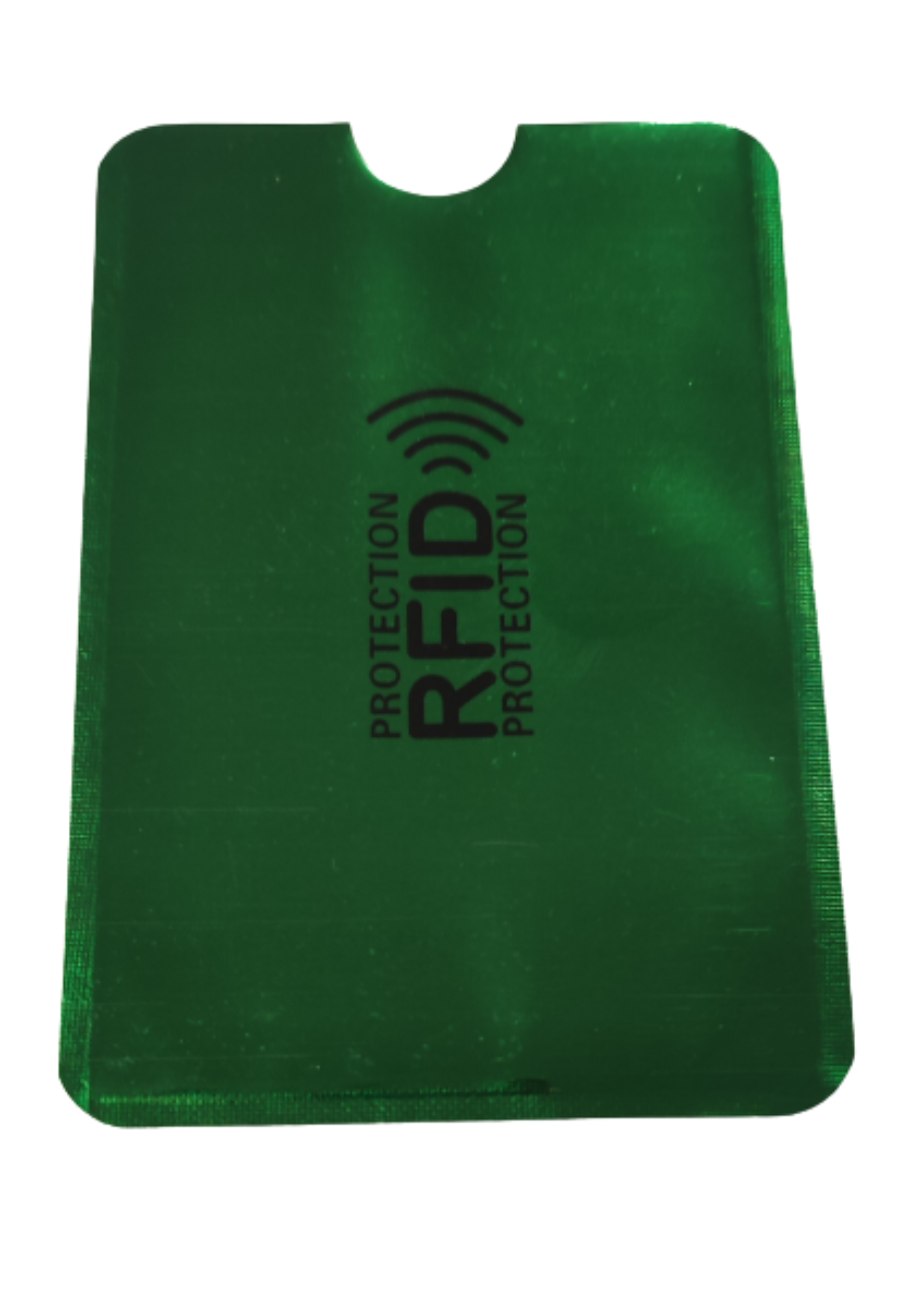 Etui ochronne - antykradzieżowe zabezpieczające karty płatnicze, kredytowe, identyfikacyjne w kolorze ciemnozielonym.