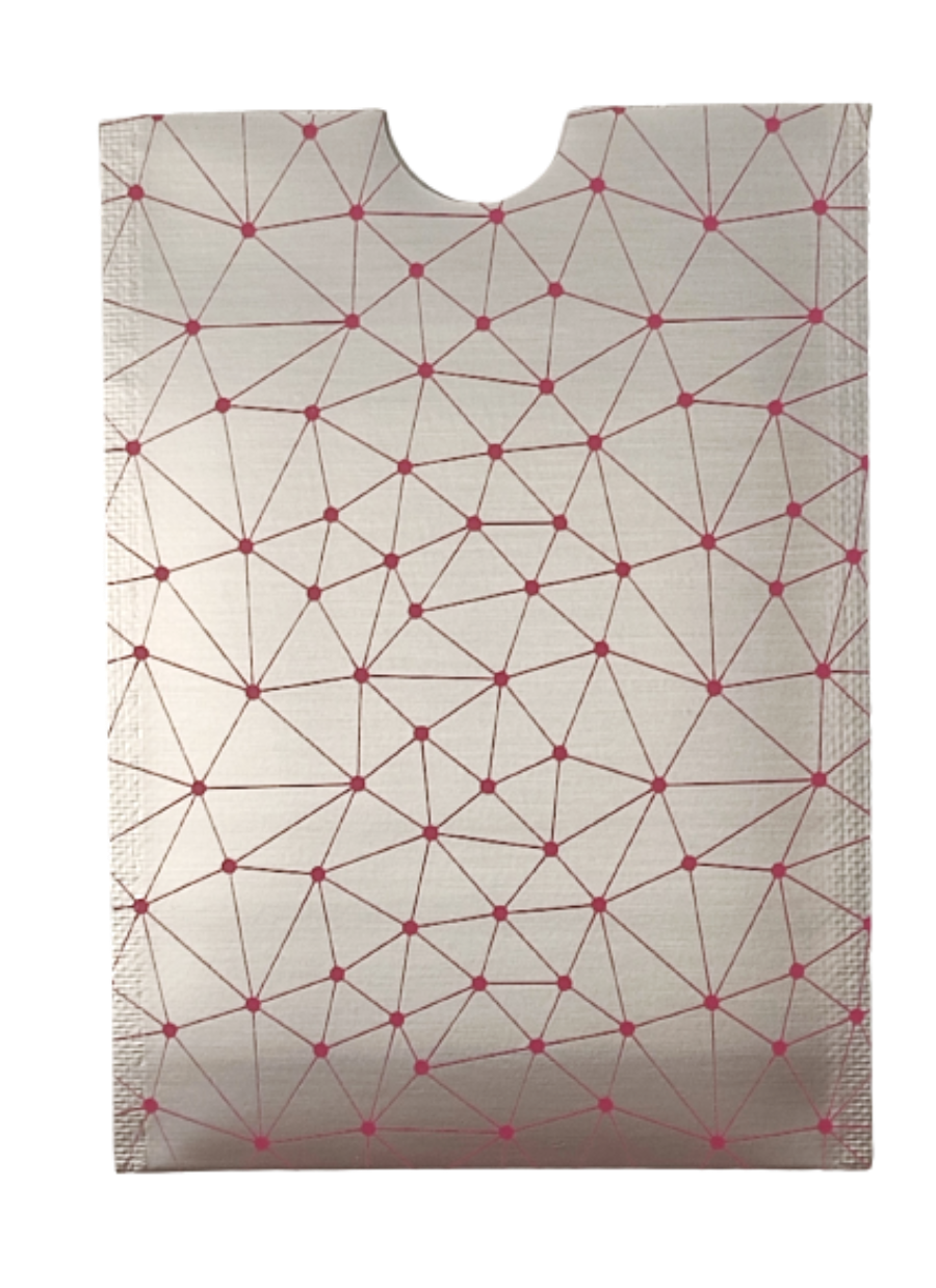 Etui ochronne - antykradzieżowe zabezpieczające karty płatnicze, kredytowe, identyfikacyjne w kolorze różowo-szarym.