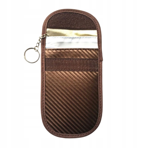 Eleganckie etui w kolorze brązowym, do kluczyków samochodowych, kart bankomatowych, płatniczych i kredytowych wykonane ze specjalnego tworzywa blokującego fale radiowe.