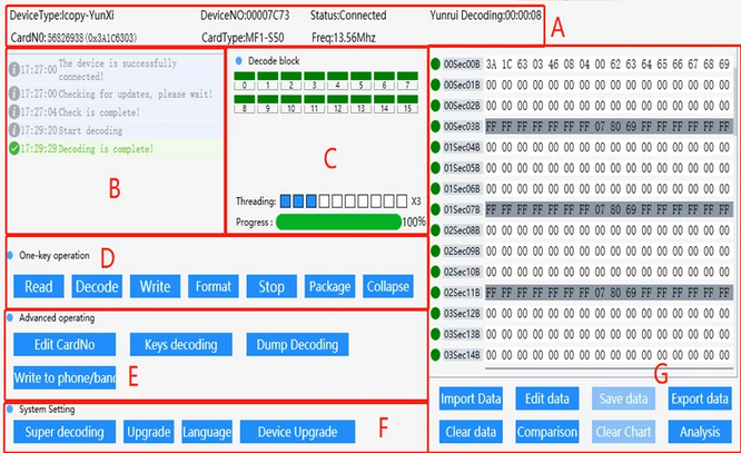 iCopyX10 posiada również pełną funkcję dekodowania kart/breloków/naklejek za pośrednictwem WIFI bądź po bezpośrednim podłączeniu go do komputera.