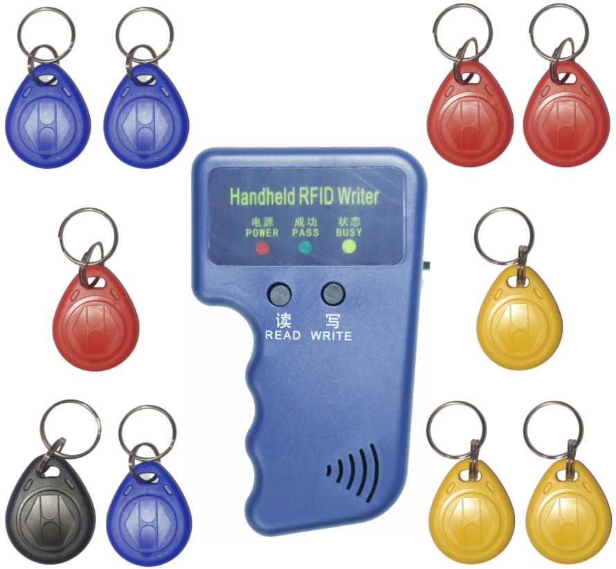 KOPIARKA PROGRAMATOR DUPLIKATOR BRELOKÓW RFID 125kHz WRAZ Z 10 BRELOKAMI RFID(CHIP PROGRAMOWALNY EM4305) W ZESTAWIE.
