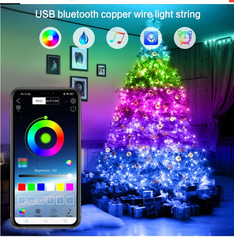 Inteligentne lampki LED o długości 10 metrów, sterowane bezpośrednio z Twojego telefonu. Wystarczy zeskanować kod QR, pobrać aplikację oraz podłączyć lampki przez Bluetooth aby w pełni cieszyć się magią świąt.