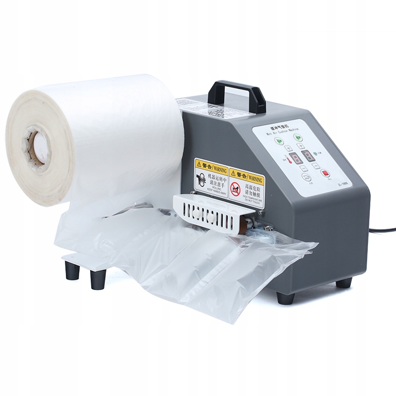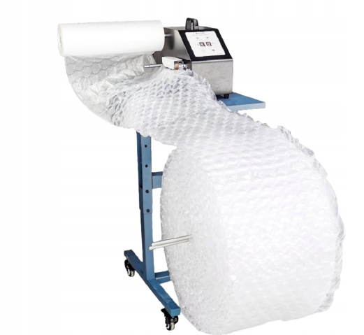 Nadmuchuje i zgrzewa rolkę folii wytwarzając poduszki lub maty wypełnione powietrzem.