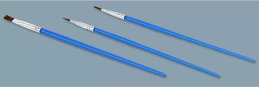 komplet 3 pędzli z różną grubością włosia, dla wygodnego nakładania farby.