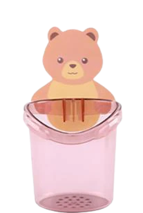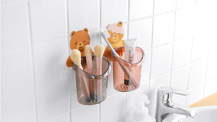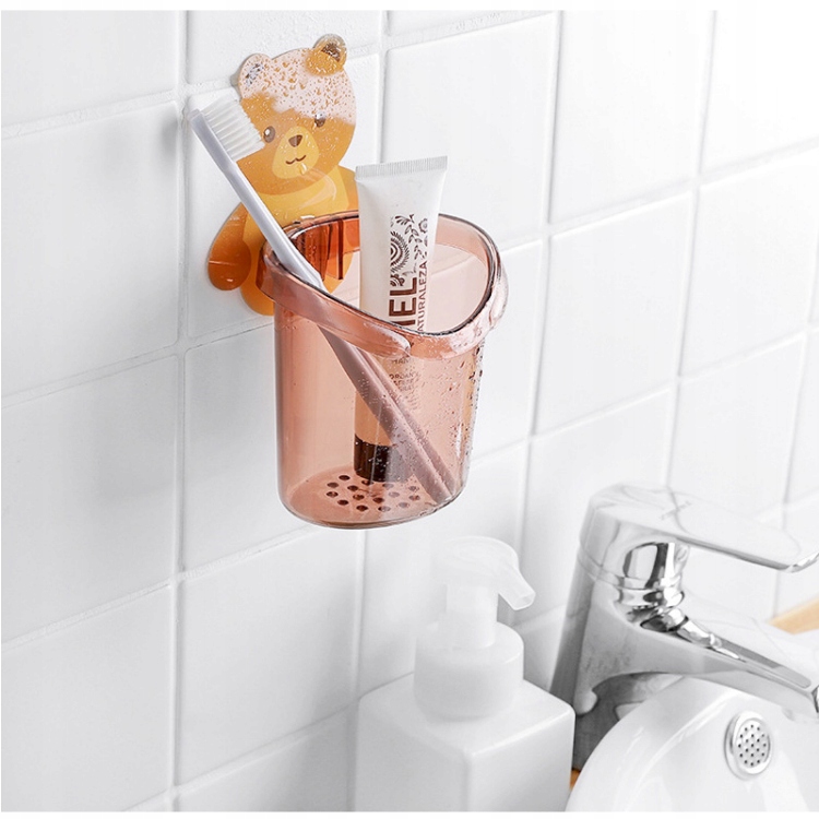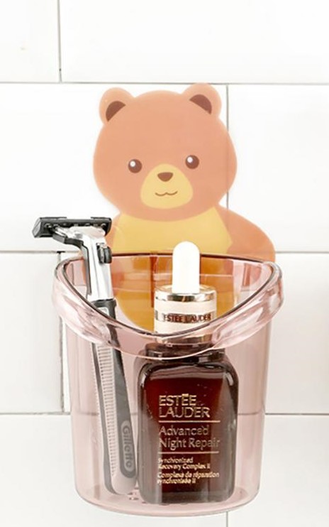 Kubek, pojemnik na szczotki do zębów, pastę i nie tylko - w kolorze różowym. Mocowany do ściany za pomocą samoprzylepnego misia-wieszaka.