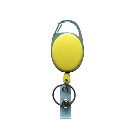 Wszechstronny, automatyczny skipass z nylonową linką do identyfikatora, holderu, dokumentów bądź kluczy. Skipass w kolorze żółtym wyposażony jest w metalowy klips, karabińczyk oraz metalowe oczko do zawieszenia kluczy.
