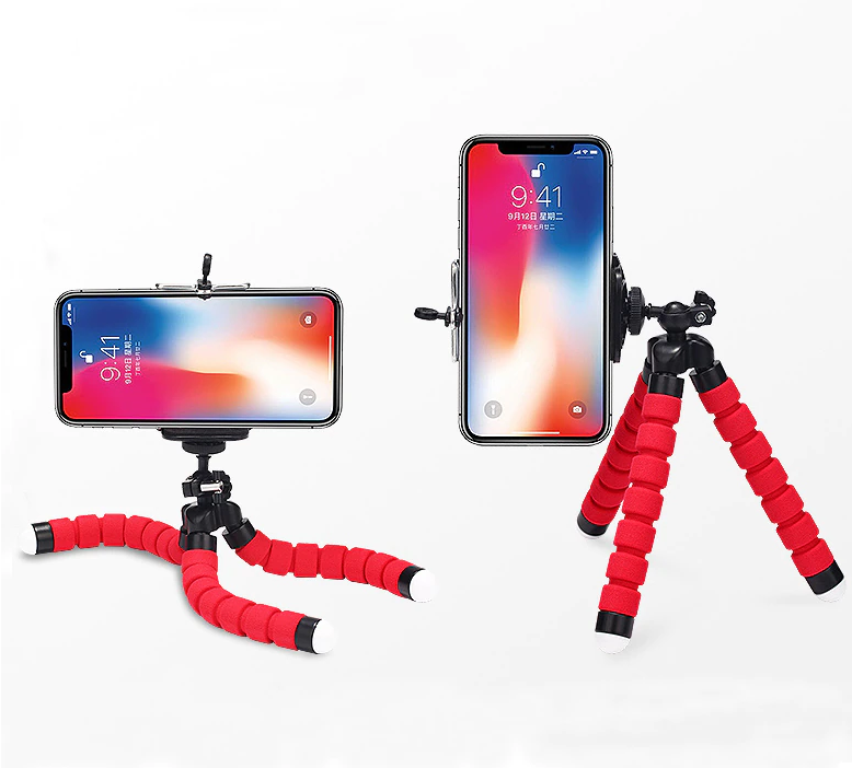 W zestawie znajduje się także uchwyt na telefon, który dokręcany jest do statywu.