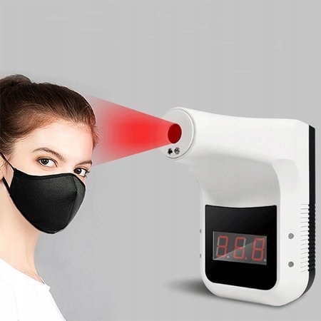 Bezdotykowy termometr ścienny na podczerwień do pomiaru temperatury osób przy wejściu do placówki medycznej, instytucji, firmy, szkoły...