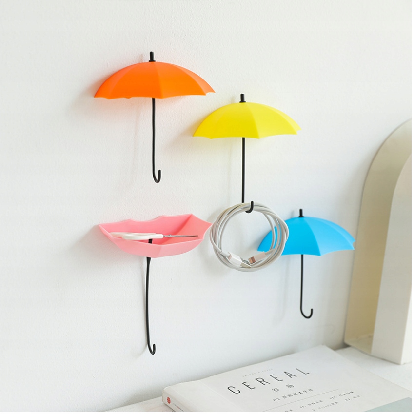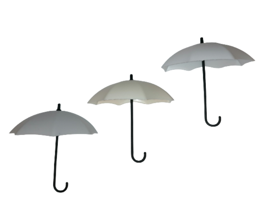 Pełen uroku zestaw 3 sztuk haczyków, wieszaków, pojemników w kształcie parasolek. Zdecydowanie odmienią w niecodzienny sposób Twoje pomieszczenia. Wykonane ze starannością dodadzą uroku w każdym pomieszczeniu.